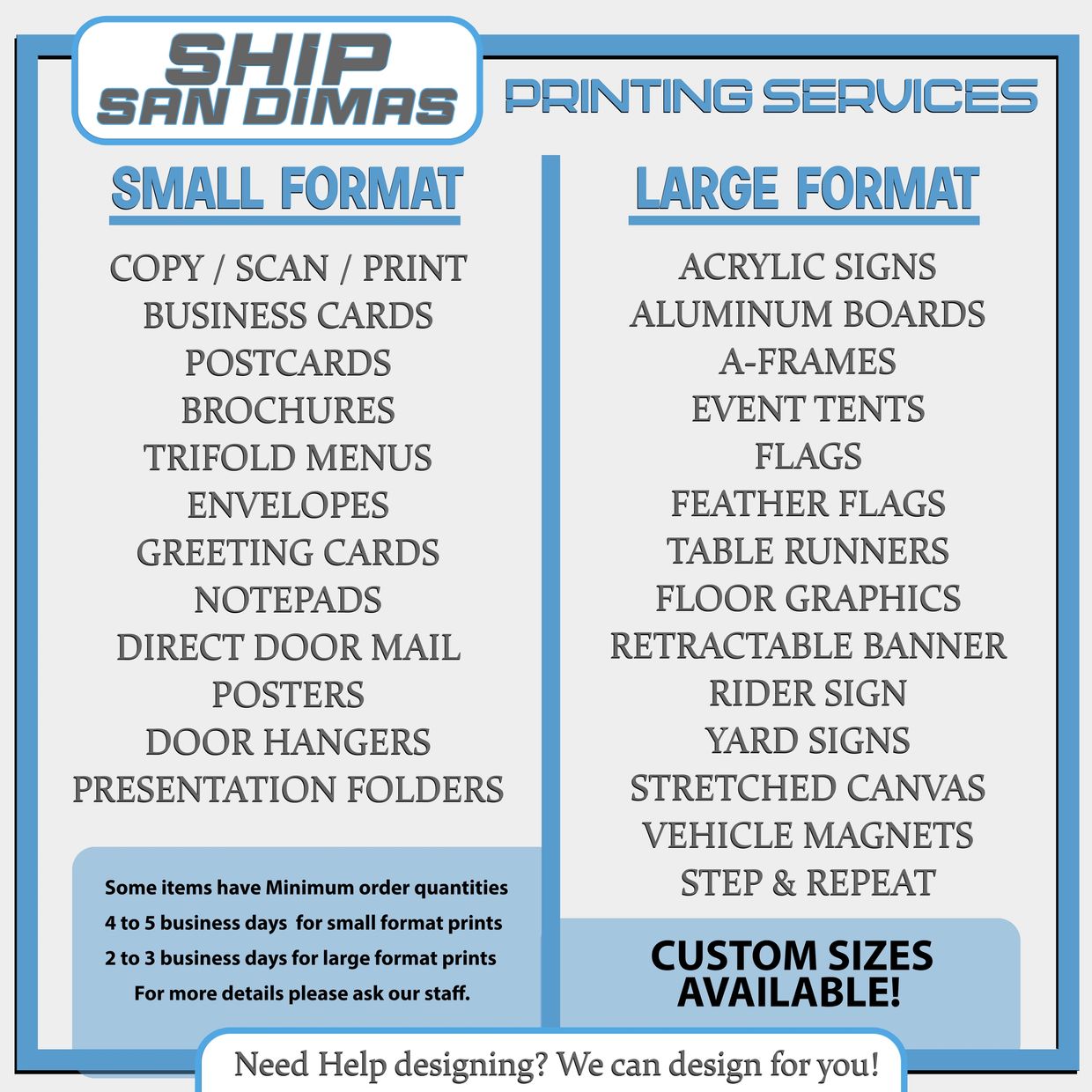 Shipping, Mailbox Rentals and Printing services